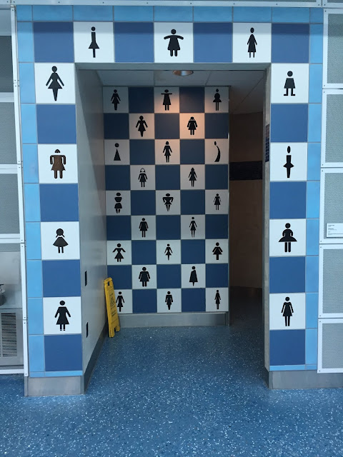 Once through security, the rest rooms at our gate also sparked my interest. I had never seen so many icons representing gender before.