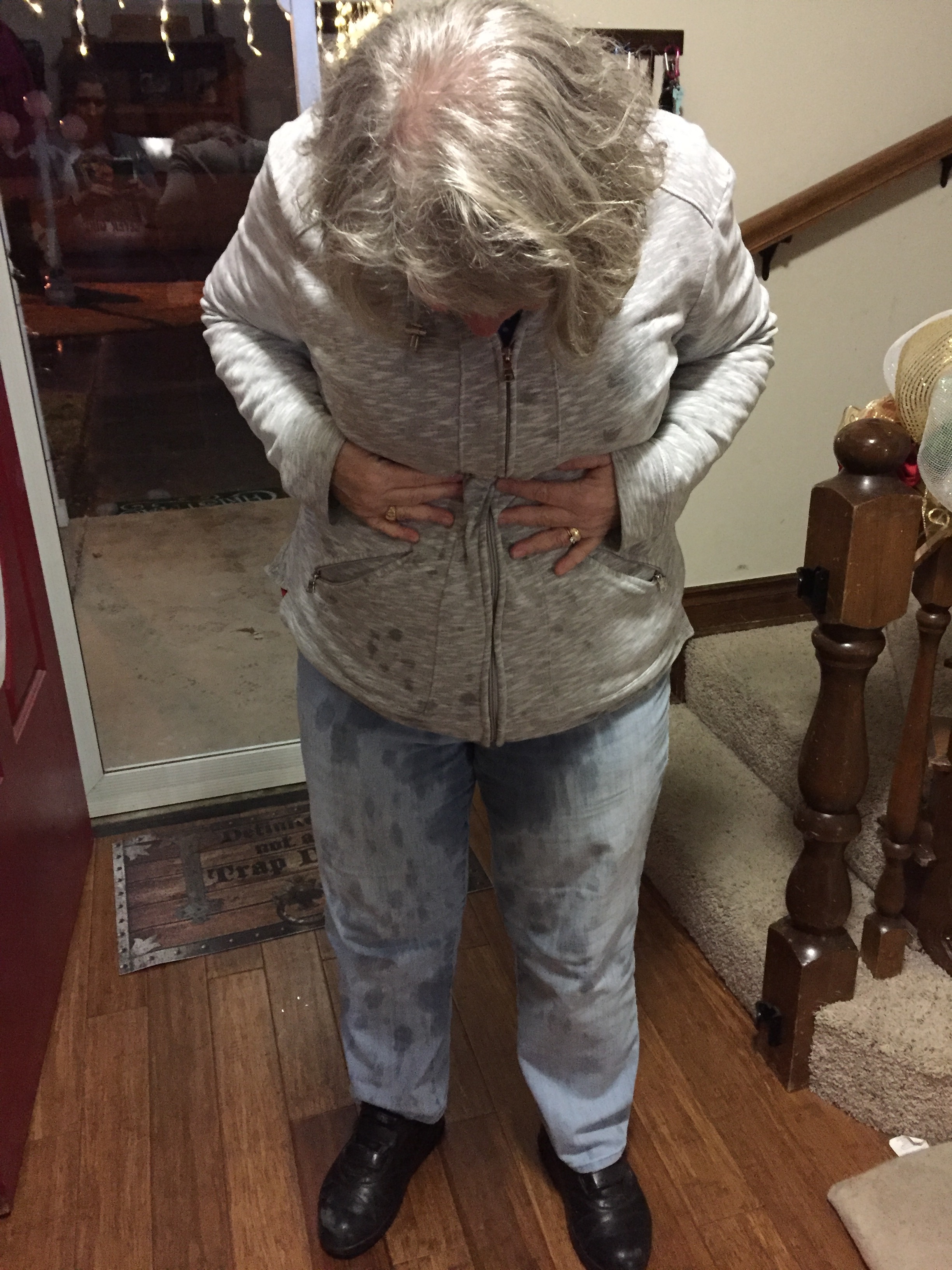 Autumn had been up in her room engrossed in a book when she heard the ruckus by the front door. She came down to investigate. When she learned what all the activity had been she said mournfully, "You were splashing and you didn't call me...?". "Well suit up and we'll go out now," Frank told her. This time Frank took the time to put on a jacket himself. As it turns out, Autumn excels at splashing and tired out her Grandpa. I think that night was a highlight of our visit; though Frank will attest that his poor hip was quite sore for a couple days thereafter from the repeated impact.